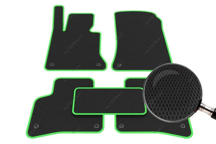 Комплект из Эва - основной цвет Черный, дополнительный цвет Зеленый - имеет ячеистую пористую структуру, за счет этого собирает талую воду от снега, грязь и слякоть с ног. Аккумулирует до 1 литра воды. Гарантия на автоковрики Автофрант, артикул dd0g90vu для Q3 - 2 года. Доставку осуществляем курьером, СДЭК, а также любой транспортной компанией и Почтой России. Оплата возможна на сайте, при получении в пункте выдачи, также доступен наложенный платеж.