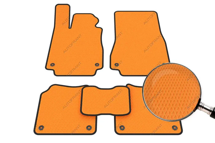 Комплект из Эва - основной цвет Оранжевый, дополнительный цвет Черный - имеет ячеистую пористую структуру, за счет этого собирает талую воду от снега, грязь и слякоть с ног. Аккумулирует до 1 литра воды. Гарантия на автоковрики Автофрант, артикул 3tt10i95 для 5 серии Е34 - 2 года. Доставку осуществляем курьером, СДЭК, а также любой транспортной компанией и Почтой России. Оплата возможна на сайте, при получении в пункте выдачи, также доступен наложенный платеж.
