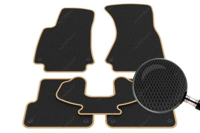 Комплект из Эва - основной цвет Черный, дополнительный цвет Бежевый - имеет ячеистую пористую структуру, за счет этого собирает талую воду от снега, грязь и слякоть с ног. Аккумулирует до 1 литра воды. Гарантия на автоковрики Автофрант, артикул h910vd0k для Волга - 2 года. Доставку осуществляем курьером, СДЭК, а также любой транспортной компанией и Почтой России. Оплата возможна на сайте, при получении в пункте выдачи, также доступен наложенный платеж.
