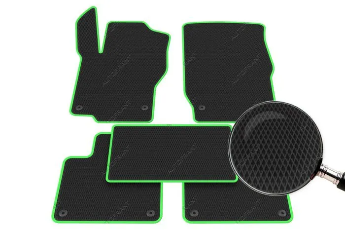 Комплект из Эва - основной цвет Черный, дополнительный цвет Зеленый - имеет ячеистую пористую структуру, за счет этого собирает талую воду от снега, грязь и слякоть с ног. Аккумулирует до 1 литра воды. Гарантия на автоковрики Автофрант, артикул h910vd0k для Санта Фе Классик - 2 года. Доставку осуществляем курьером, СДЭК, а также любой транспортной компанией и Почтой России. Оплата возможна на сайте, при получении в пункте выдачи, также доступен наложенный платеж.