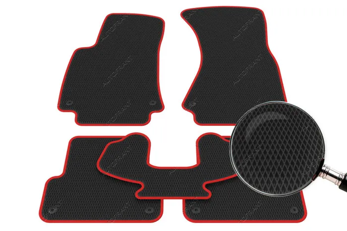 Комплект из Эва - основной цвет Черный, дополнительный цвет Красный - имеет ячеистую пористую структуру, за счет этого собирает талую воду от снега, грязь и слякоть с ног. Аккумулирует до 1 литра воды. Гарантия на автоковрики Автофрант, артикул ftd03i95 для Ж45 - 2 года. Доставку осуществляем курьером, СДЭК, а также любой транспортной компанией и Почтой России. Оплата возможна на сайте, при получении в пункте выдачи, также доступен наложенный платеж.