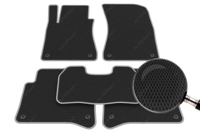 Автомобильные коврики в салон или багажник автомобиля Autofrant из материала Eva защищают салон от сезонной пыли, грязи и влаги, сохраняя поверхность под ногами сухой. Выкройка по оригинальным лекалам Инфинити, поэтому полики идеально подойдут для вашего Infiniti G35 .
