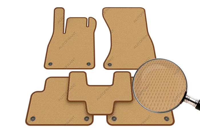 Комплект из Эва - основной цвет Бежевый, дополнительный цвет Коричневый - имеет ячеистую пористую структуру, за счет этого собирает талую воду от снега, грязь и слякоть с ног. Аккумулирует до 1 литра воды. Гарантия на автоковрики Автофрант, артикул 0btdy0vu для КХ - 2 года. Доставку осуществляем курьером, СДЭК, а также любой транспортной компанией и Почтой России. Оплата возможна на сайте, при получении в пункте выдачи, также доступен наложенный платеж.