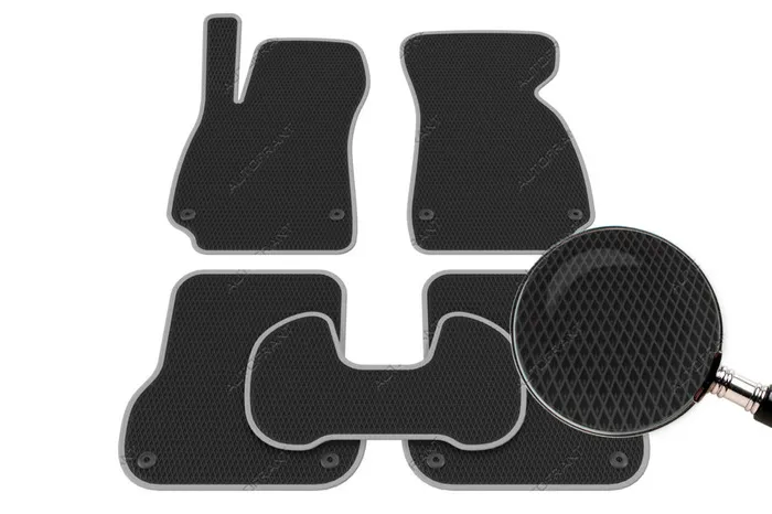 Автомобильные коврики в салон или багажник автомобиля Autofrant из материала Eva защищают салон от сезонной пыли, грязи и влаги, сохраняя поверхность под ногами сухой. Выкройка по оригинальным лекалам Вольво, поэтому полики идеально подойдут для вашего Volvo S60 (2000-2010) .