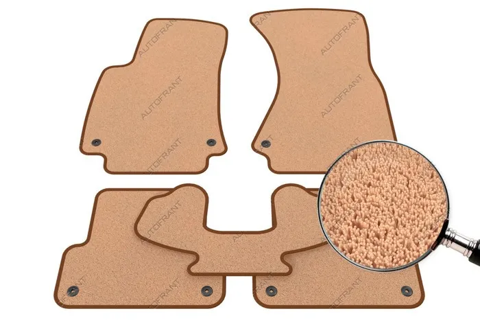 Самые востребованные коврики для автомобиля в салон и багажник от производителя Автофрант выполнены из ворсового материала Premium-класса, плотностью 850 г/м.кв. Высота ворса 8 мм. По желанию клиента могут быть дополнены подпятником. В любую погоду защищают поверхность пола машины от уличной грязи. Выкройка по фирменным лекалам Ауди, поэтому автоковрики лягут как оригинальные в ваш Audi A6 .